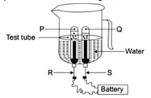 4. In the given experimental setup of electrolysis of water, if P and Q are the gases collected in the test tubes enclosing the electrodes R and S, then select the option/ options in which the matching is correct: